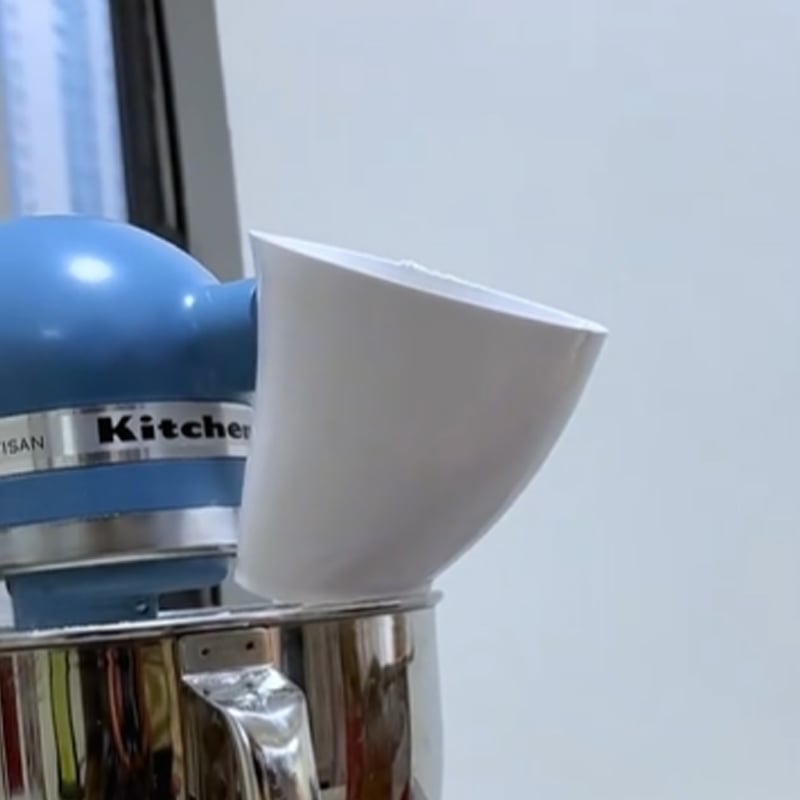 It does exactly what I hoped it would do, funnel ingredients straight into the mix and not get on top of the attachments or spill outside of the bowl. Also no more trying to pore in ingredients and smacking the measuring cup or bowl on an attachment and knocking stuff everywhere.