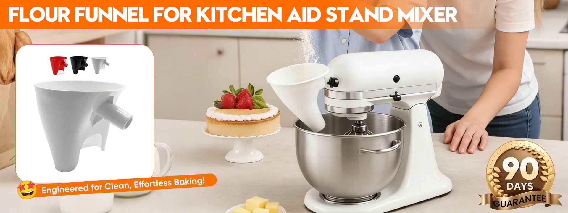 Such an easy way to keep from making a mess! I wish I had this years ago. If you are a baker and use a stand mixer, you need this too. Perfect fit and quality product that keeps my powdered sugar from spilling when I make icing or adding flour.